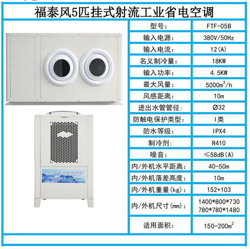 .节能省电、同等面积安装比传统空调省电30~50%,覆盖面积大一台5P的可以覆盖200个平方车间降温,出风口温度可以做到13-16度。车间温度可做到20-26度适合人体体感温度。