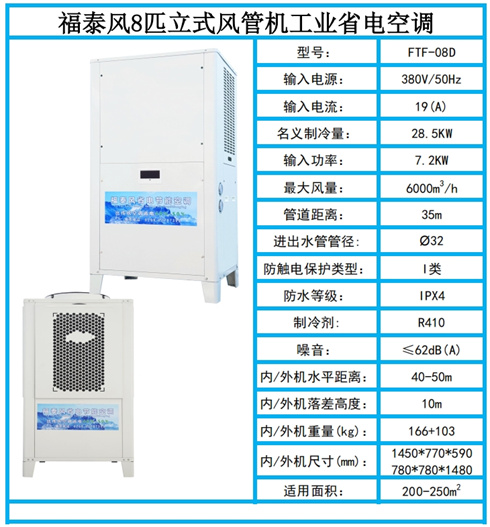 .节能省电、同等面积安装比传统空调省电30~50%,覆盖面积大一台5P的可以覆盖200个平方车间降温,出风口温度可以做到13-16度。车间温度可做到20-26度适合人体体感温度。